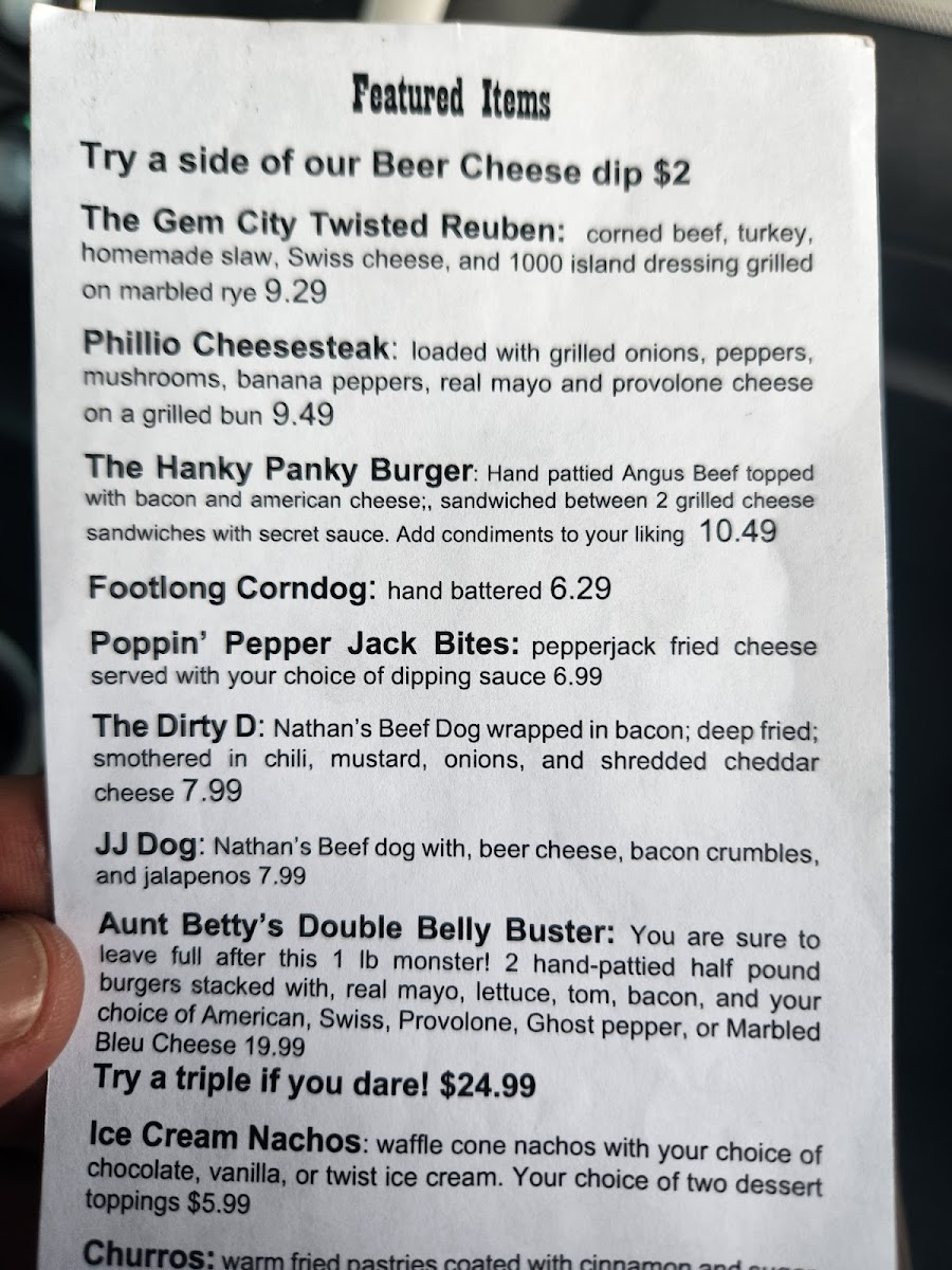 16 ounces of Granny Franer's award winning chili, topped with cheese and onions.